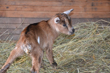 Milky Way était une magnifique chevrette extrêmement câline. Sa mère est arrivée gestante sans que nous ne le sachions, alors qu'elle venait de sevrer son premier fils dans son élevage précédent (à seulement un an). Elle n'a donc pas été complémentée en conséquence de sa gestation qui était inconnue, et n'a pas produit assez de lait pour sa chevrette. J'ai passé des heures à la veiller et à tenter de la forcer à boire le biberon sans succès. Malgré les bons soins, l'installation sous lampe chauffante, etc, Milky Way s'en est allée au bout de seulement 15 jours de vie... un véritable drame qui m'a beaucoup affectée.