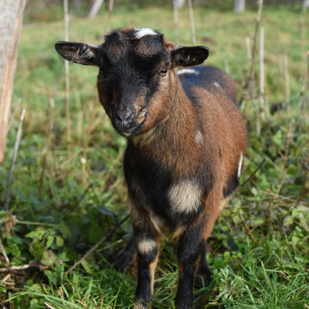 Chèvre miniature pie sauvage sundgau marbré, née en avril 2020
